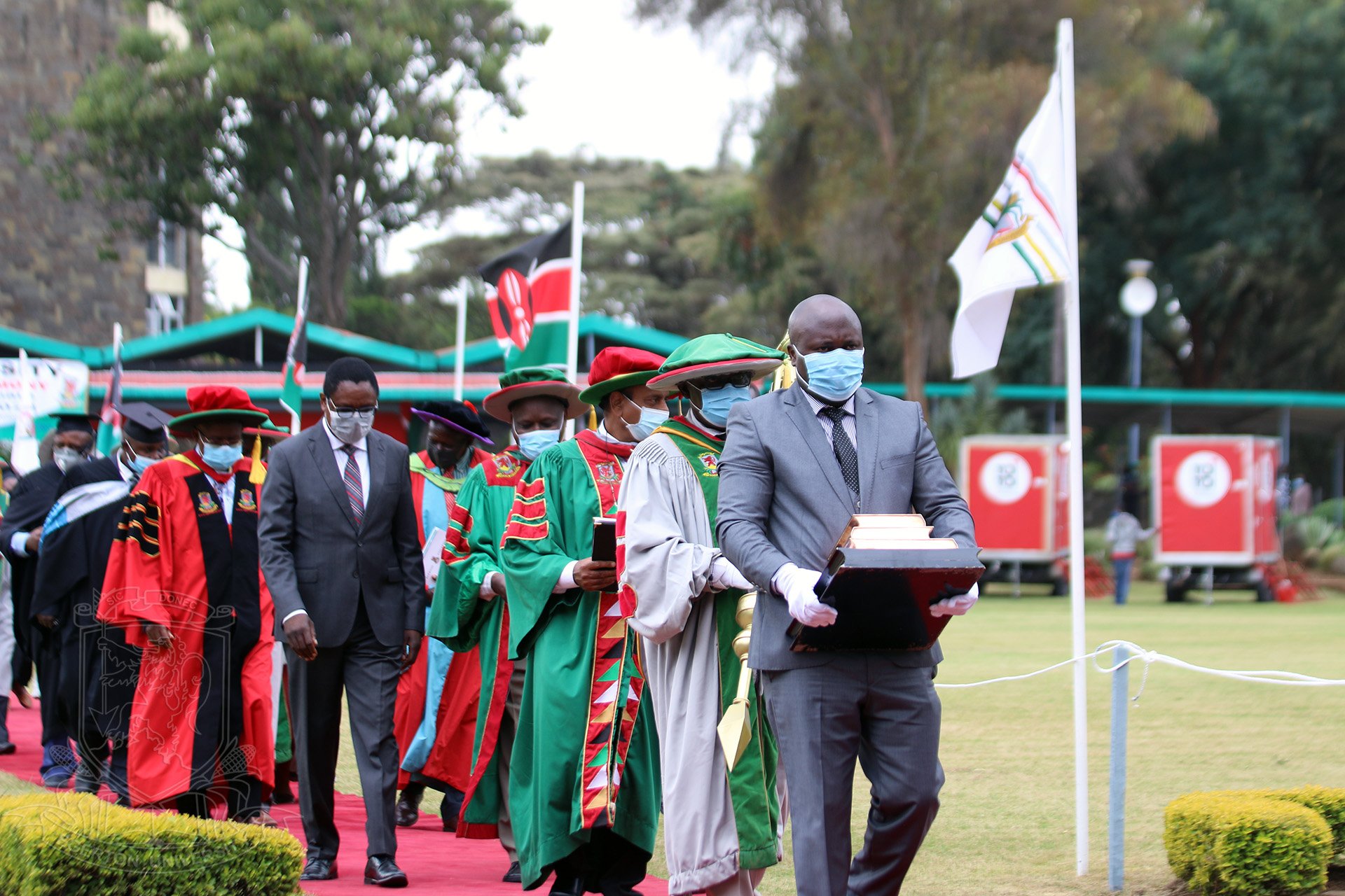 Total number of 2041 Graduands (1868 Bachelors, 67 Diplomas, 83 Masters, 23 Doctorates) were Conferred with Degrees and awarded Diplomas. The virtual ceremony, held at the graduation square, saw awarding of PhDs, Master degrees, Diplomas, and Bachelor degrees to all the graduates.