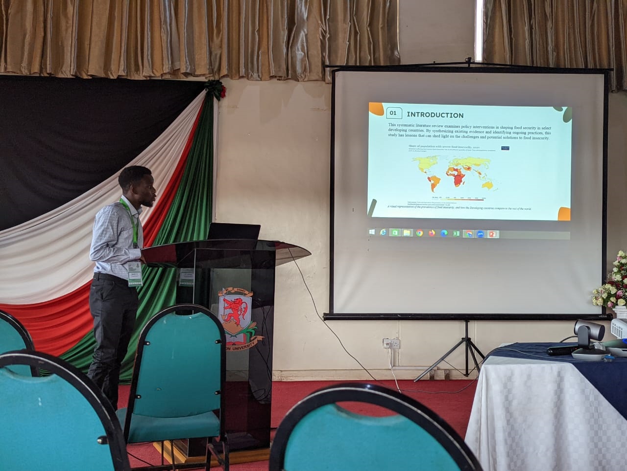 In the serene setting of the Nessuit conference hall, nestled within the ARC Hotel, Onyango Opondo finds himself at the forefront of academic discourse. As he prepares to delve into his topic on policy practices for food security, Opondo, a Master of Research in Public Policy student at the Faculty of Education and Community Development, Egerton University reflects on the journey that brought him here.