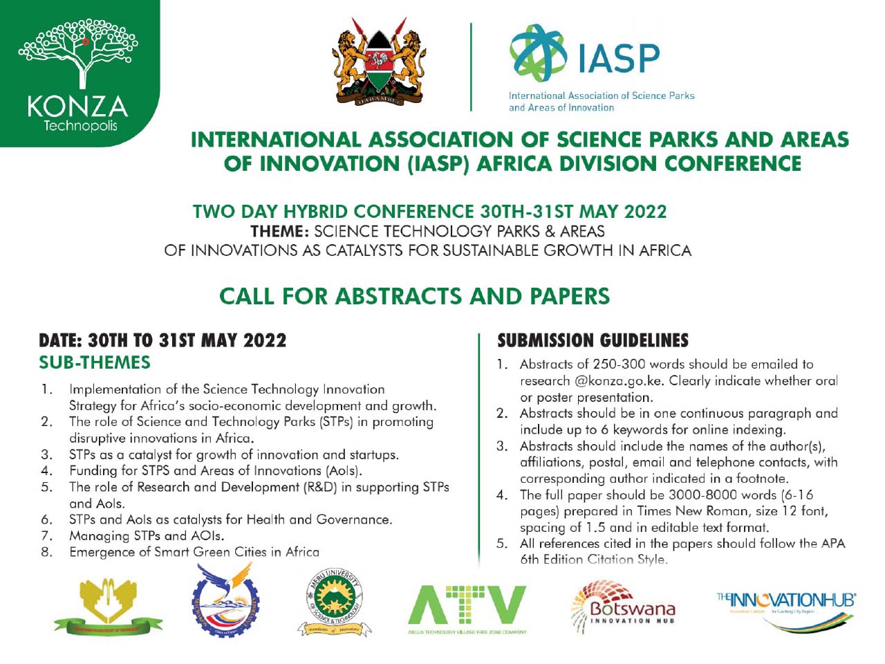 • Two-day Hybrid Conference (30th - 31st MAY, 2022). THEME: "Science Technology Parks & Areas of Innovation as Catalyst for Sustainable Grwoth in Africa"