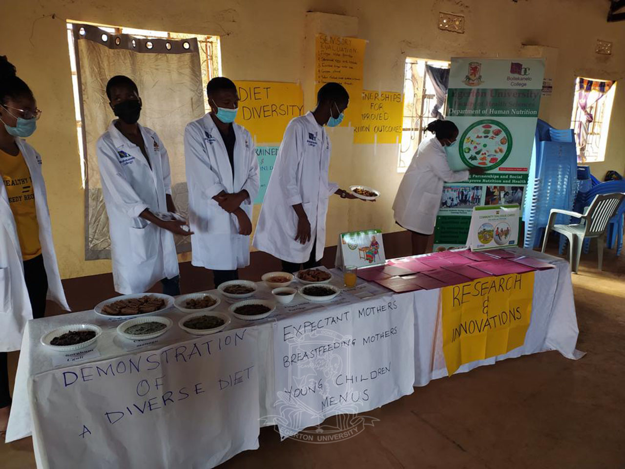 • Egerton University, in her Joint Nutrition and Dietetics (N&D) Internship Programme in the Department of Human Nutrition, Faculty of Health Sciences, trained farmers in Kitui and Taita Taveta counties in improving their nutrition and livelihoods in the drylands region. Together with Egerton students, the exchange students (interns) from Boitekanelo College in Botswana focused on accelerated partnership and social support in empowering women (pregnant and breastfeeding mothers) to prepare diverse, locally nutritious foods within dry regions and embrace embracing diverse nutrition fully to offer quality diets.
