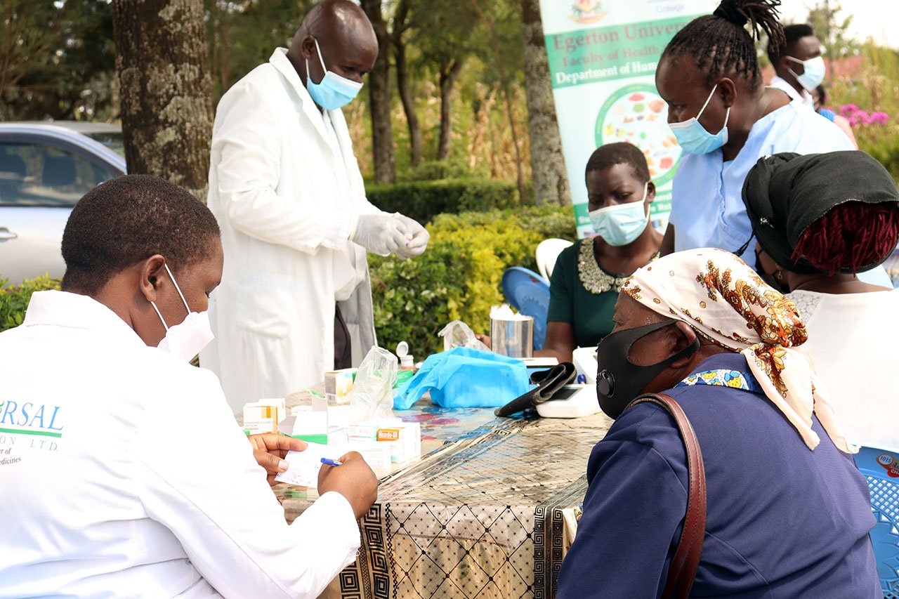 • Egerton University staff and students, together with those from Boitekanelo College of Health Sciences, Botswana, joined the Mangu Diabetic Support Group in a community nutrition outreach activity to mark this year’s World Diabetes Day at Mangu Health Centre in Rongai Sub-County, Nakuru County. The event, which was celebrated on Sunday 14 November 2021, was also attended by staff from the Nakuru County Health Department led by Dr. Benedict Osore. Dr. Osore, who was the chief guest at the event, is the Director of Medical Services for Nakuru County. According to the International Diabetes Federation (IDF), the global theme for 2021-2023 World Diabetes Day is ‘Access to Diabetes Care’.