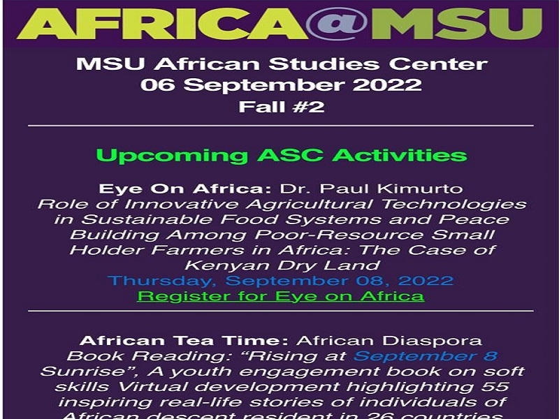 You are invited to talk under Egerton University and Michigan State university collaboration under African Alliance for Partnership (AAP),Futures Research Leadership program talk by Prof. Paul Kimurto .He will be giving talk on Role of innovative Agricultural Technologies in Sustainable Food Sysytems and Peace Building Among Poor-Resource Small Holder farmers in Africa.