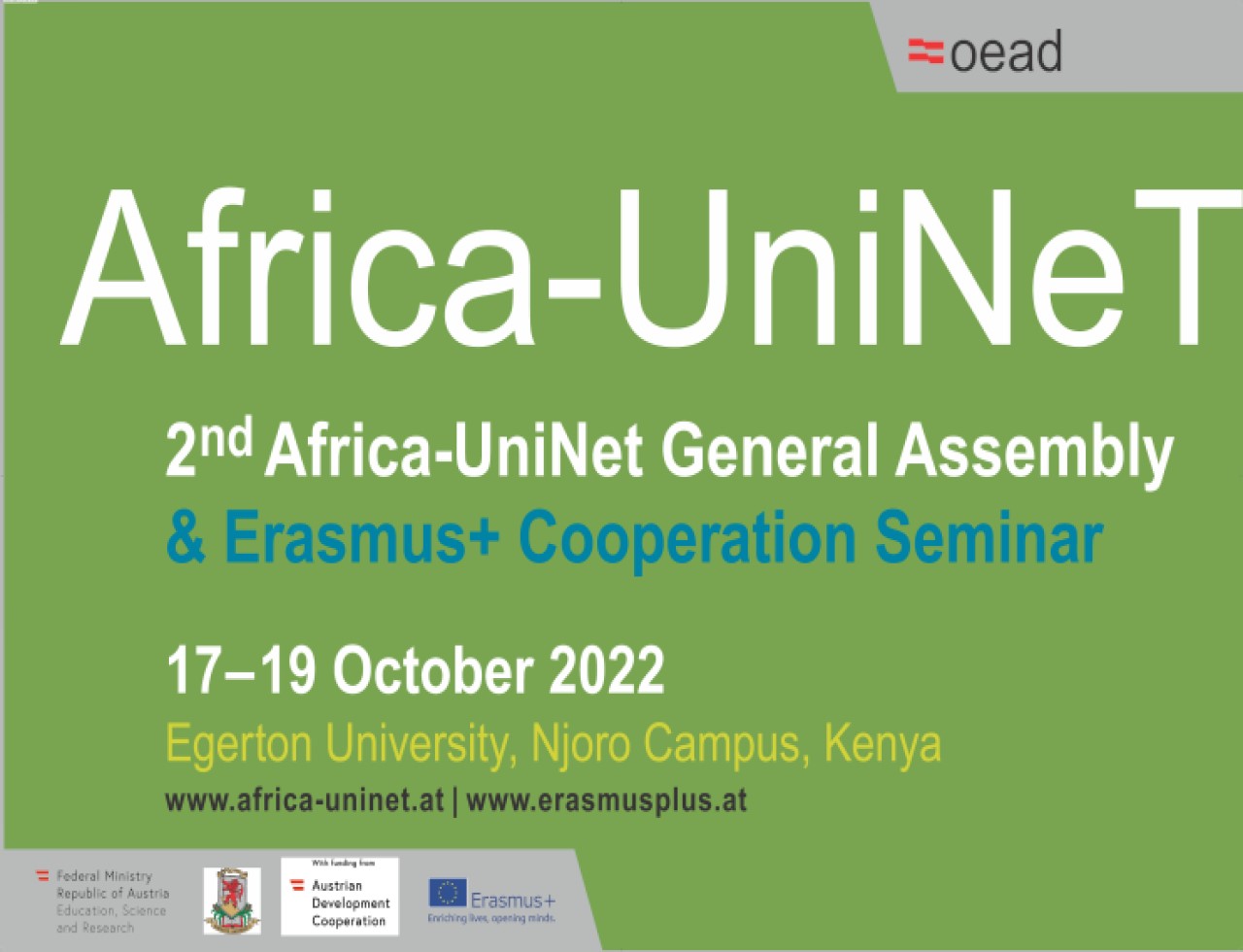 The Second Africa-UniNet General Assembly and an Erasmus+ Cooperation Seminar will take place at Egerton University from 17th October to 19th October at Njoro Campus, Egerton University, in Nakuru County.
