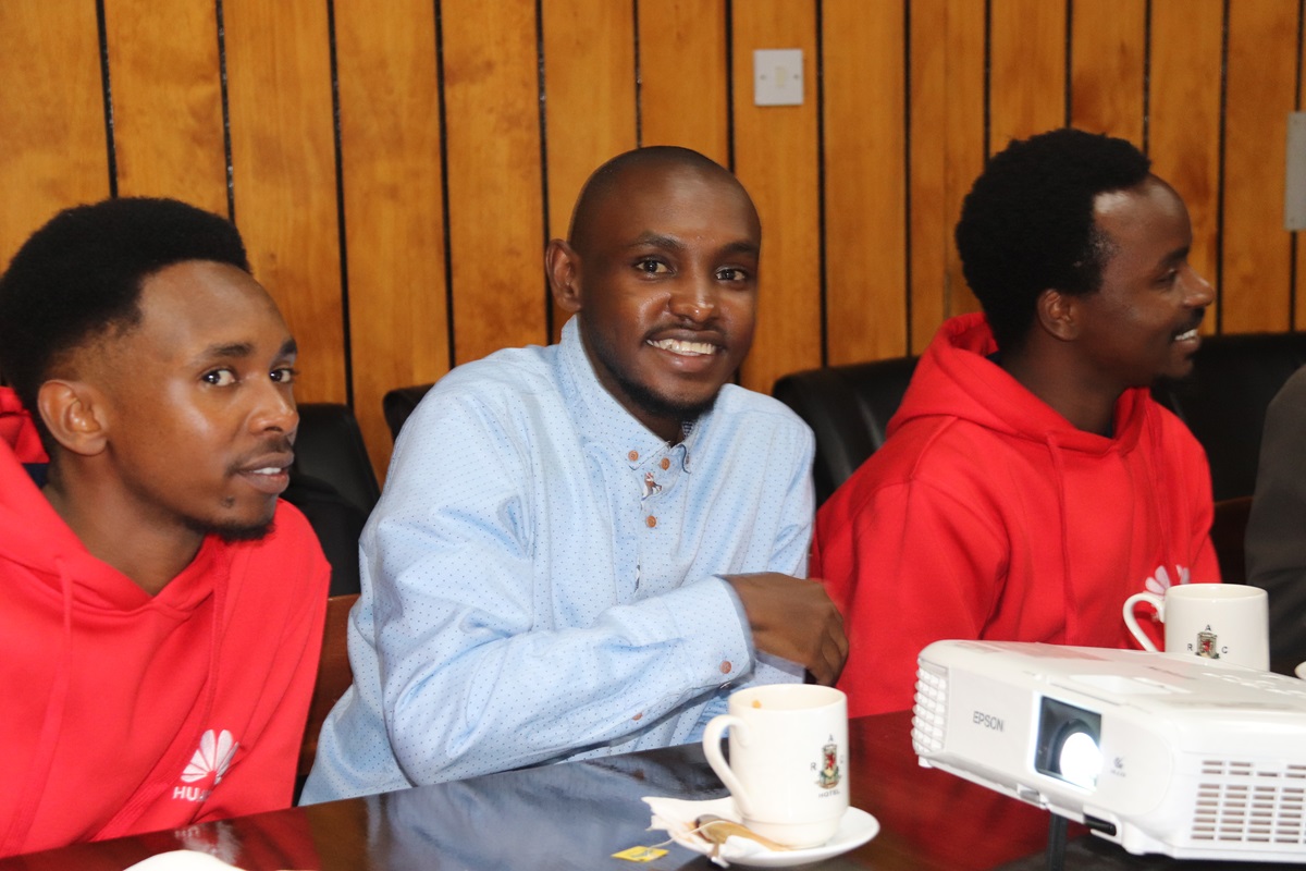 This afternoon, the Vice-Chancellor, Prof. Isaac Kibwage, hosted the winning team in his office to commend their hard work, dedication, and innovation. He was joined by DVC (ARE) Prof. Benard Aduda, Ag. DVC (Administration, Finance, and Planning) Prof. Richard Mulwa, and Director of Research Prof. George Owuor. The students were accompanied by Dr. Zachary Bosire and Dr. Jones Katiku, Chair of the Computer Science Department.