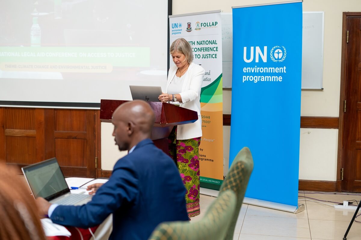 Prof. Dr. Gudrun Zagel from Paris-Lodron University Salzburg presents on climate justice through climate litigation at the Egerton University 4th Faculty of Law Conference in Naivasha, Kenya, on October 23, 2024, highlighting recent European Court of Human Rights rulings that emphasize state accountability in climate action. (Photo by Kurian Musa/Egerton University)