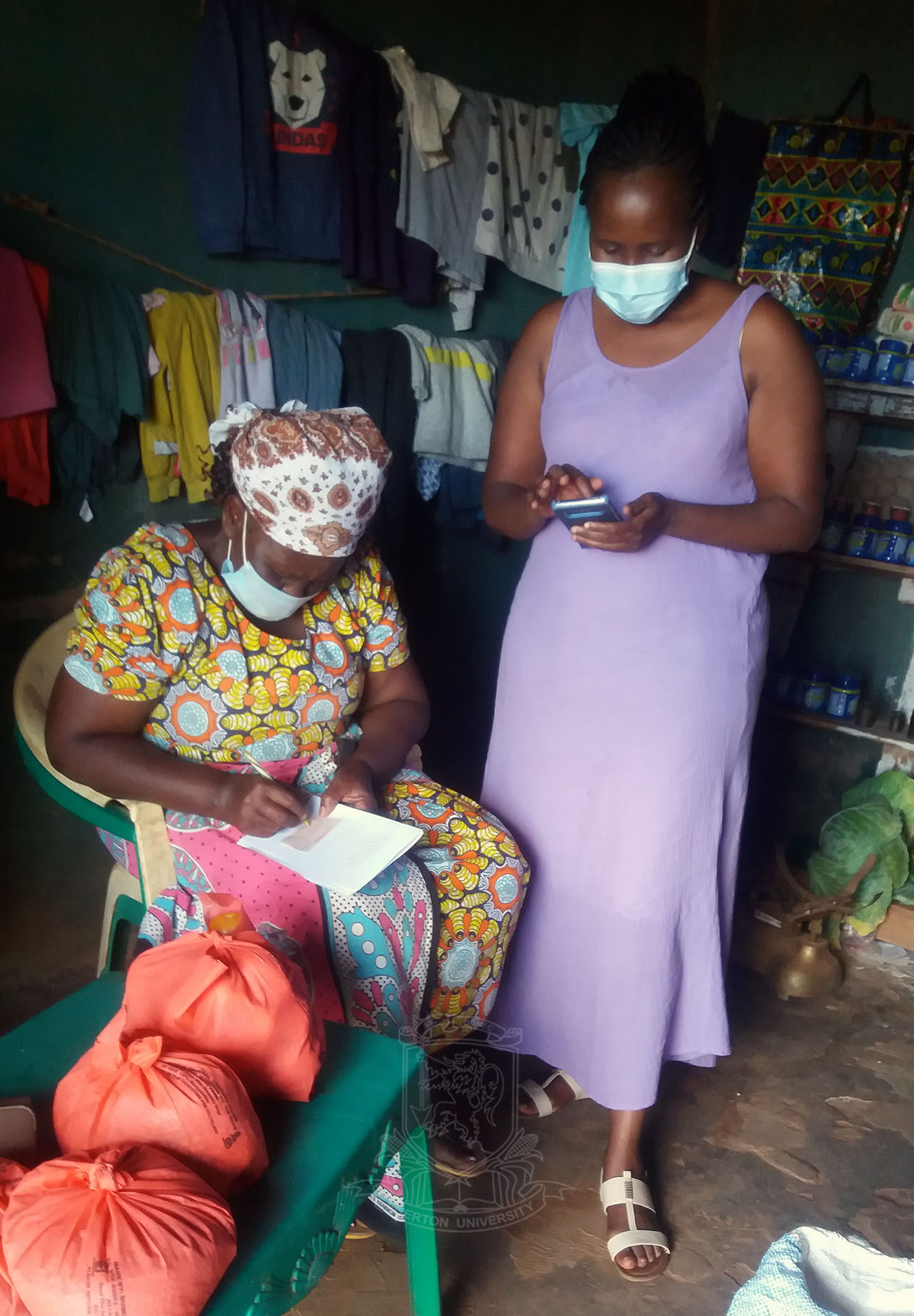 Mrs Rose Mulyongi a pigeon peas farmer and community Health Volunteer (CHV) from Kivou at her shop, looking on Dr Maureen Cheserek, the Nutrition and Dietetics Internship Programme coordinator and the DTCsDr Maureen Cheserek, the Nutrition and Dietetics Internship Programme Coordinator and the DTCs Nutrition Specialist, said, “training will go a long way in enhancing women’s knowledge and skills and contributing towards improving nutrition outcomes of women and children in these dryland regions where stunting among young children is a major public health concern”.