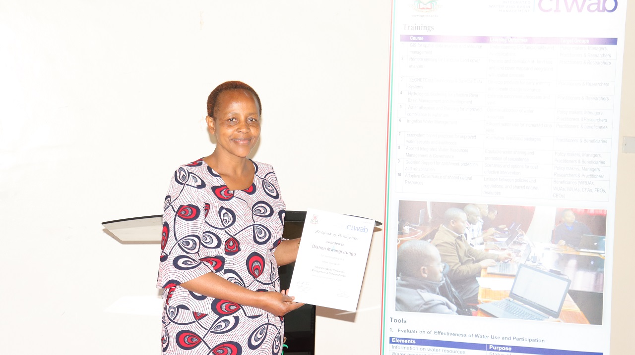 The Director of Research and Extension Prof Nancy Mungai officiated the closing ceremony where certificates of participation in the two weeks training facilitated by Dean Faculty of Engineering Prof. Japheth Onyando in aegis of CIWAB.