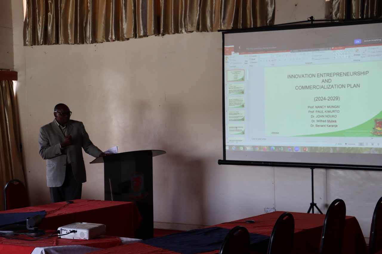 Crafted through a collaborative effort involving University Management, the Institutional Working Group (IWG) that is, Prof. Nancy Mungai, Prof. Paul Kimurto, Dr. John Nduko, Dr. Winfred Mulwa and Dr. Benard Karanja. Collaborations also involved faculty and students, the five-year master plan reflects a synthesis of diverse perspectives, knowledge, skills, and aspirations. Embodying principles of quality, honesty, and inclusivity, the plan endeavors to establish a supportive environment that empowers individuals to unleash their entrepreneurial potential and translate innovative concepts into practical solutions for socio-economic development.