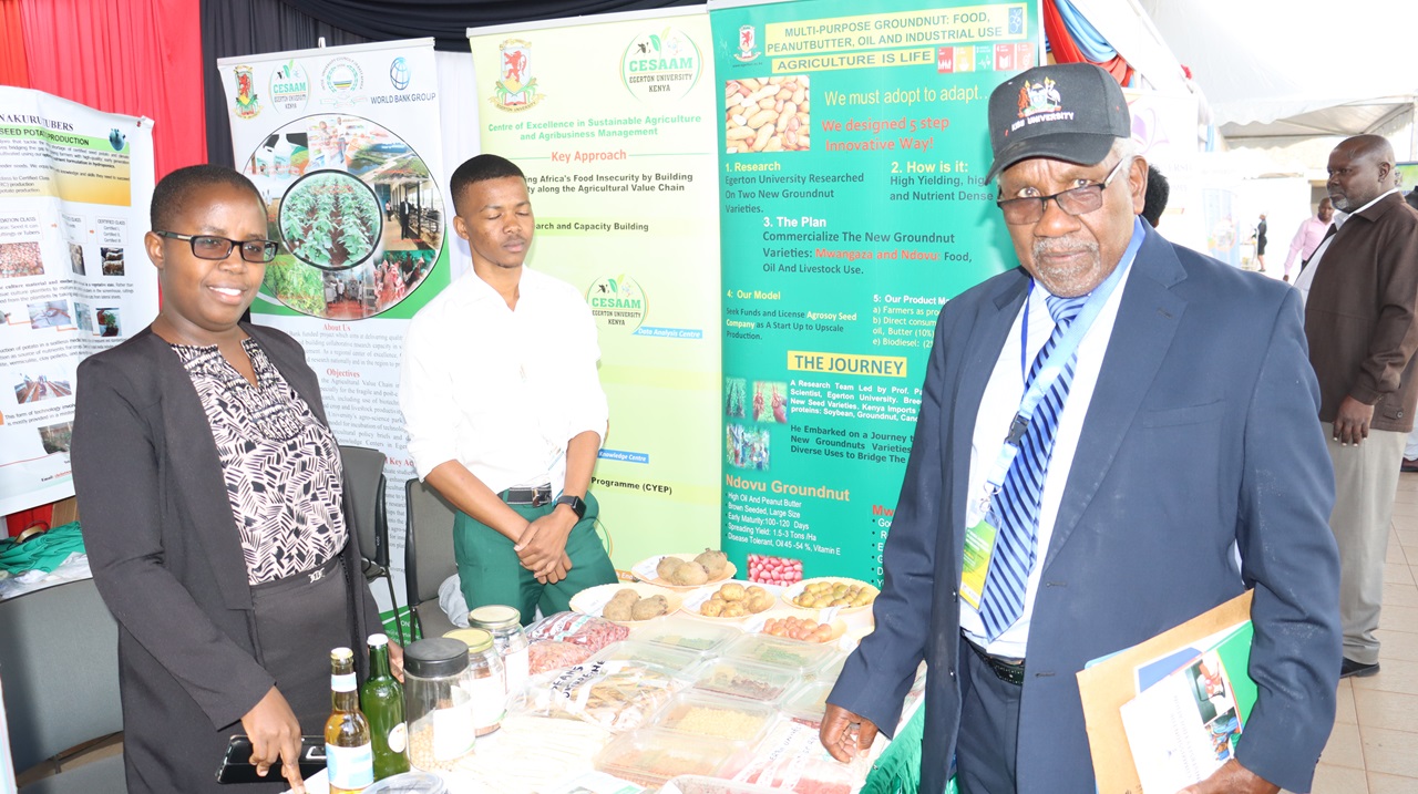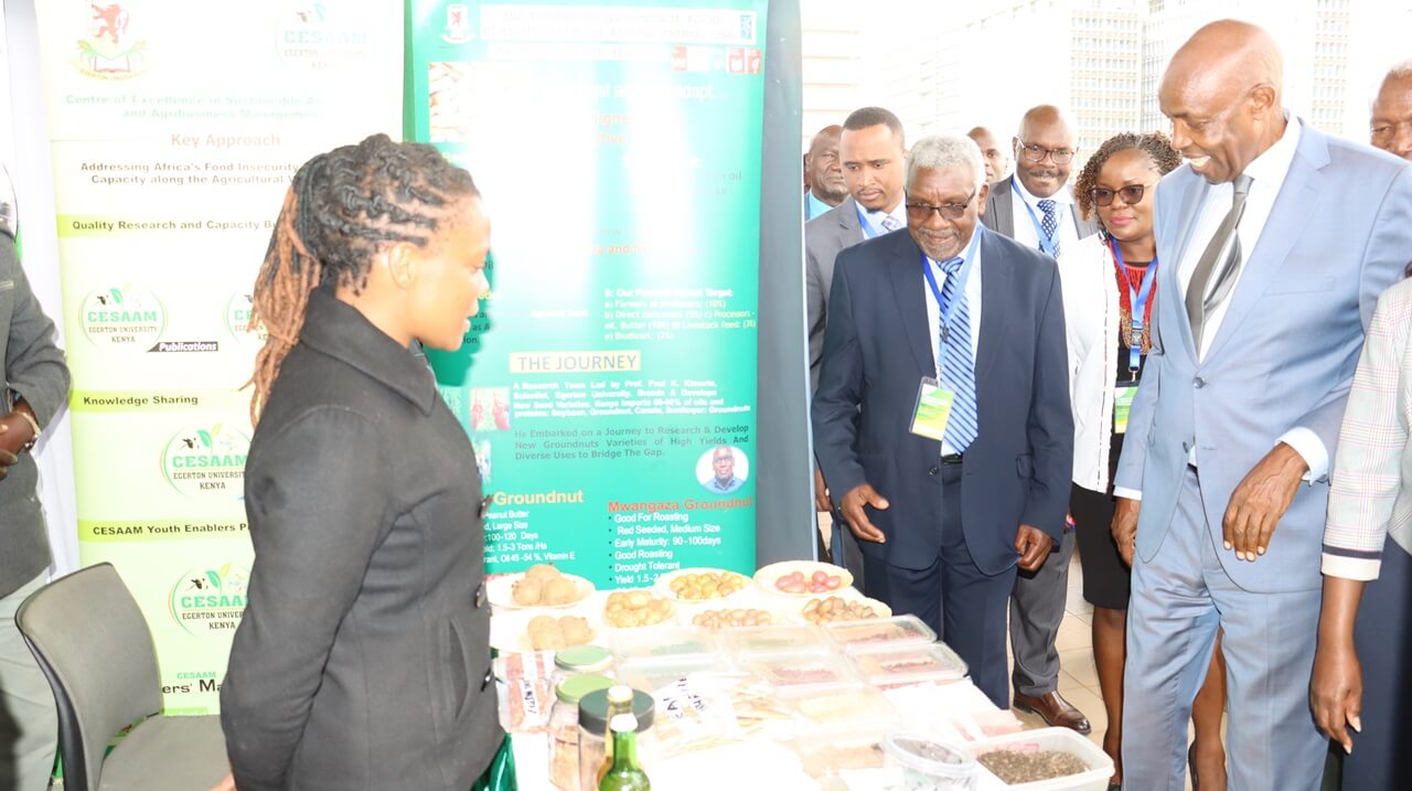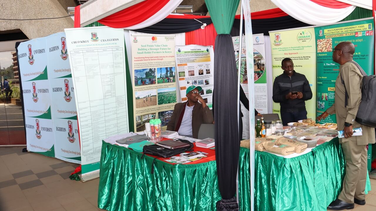 The event, held in Nairobi, brought together key stakeholders from the higher education sector. Among the notable attendees was the Cabinet Secretary of Education, Honorable Ezekiel Ombaki Machogu, who took a keen interest in Egerton University's booth. Here, a team of enthusiastic innovators, PhD, and Masters students proudly presented their groundbreaking agricultural innovations. These included new varieties of potatoes, sorghum, millet, and groundnuts, which have been developed to enhance the seed systems across East Africa. The university's Alumni office also presented the Cabinet Secretary with souvenirs as a token of appreciation for engaging in the conference.