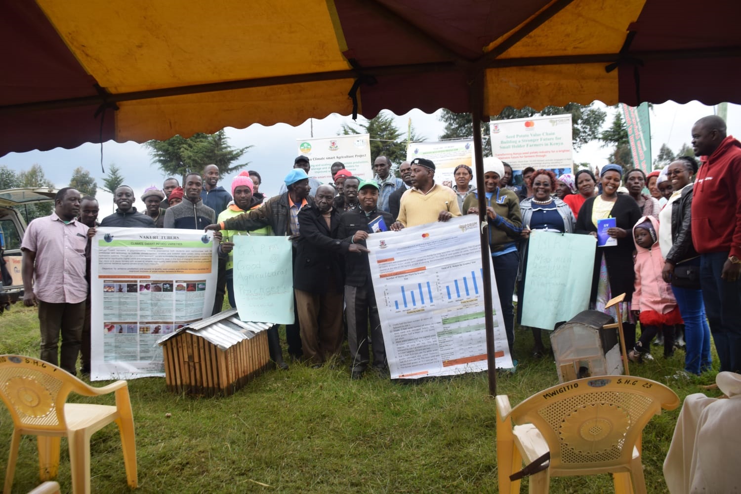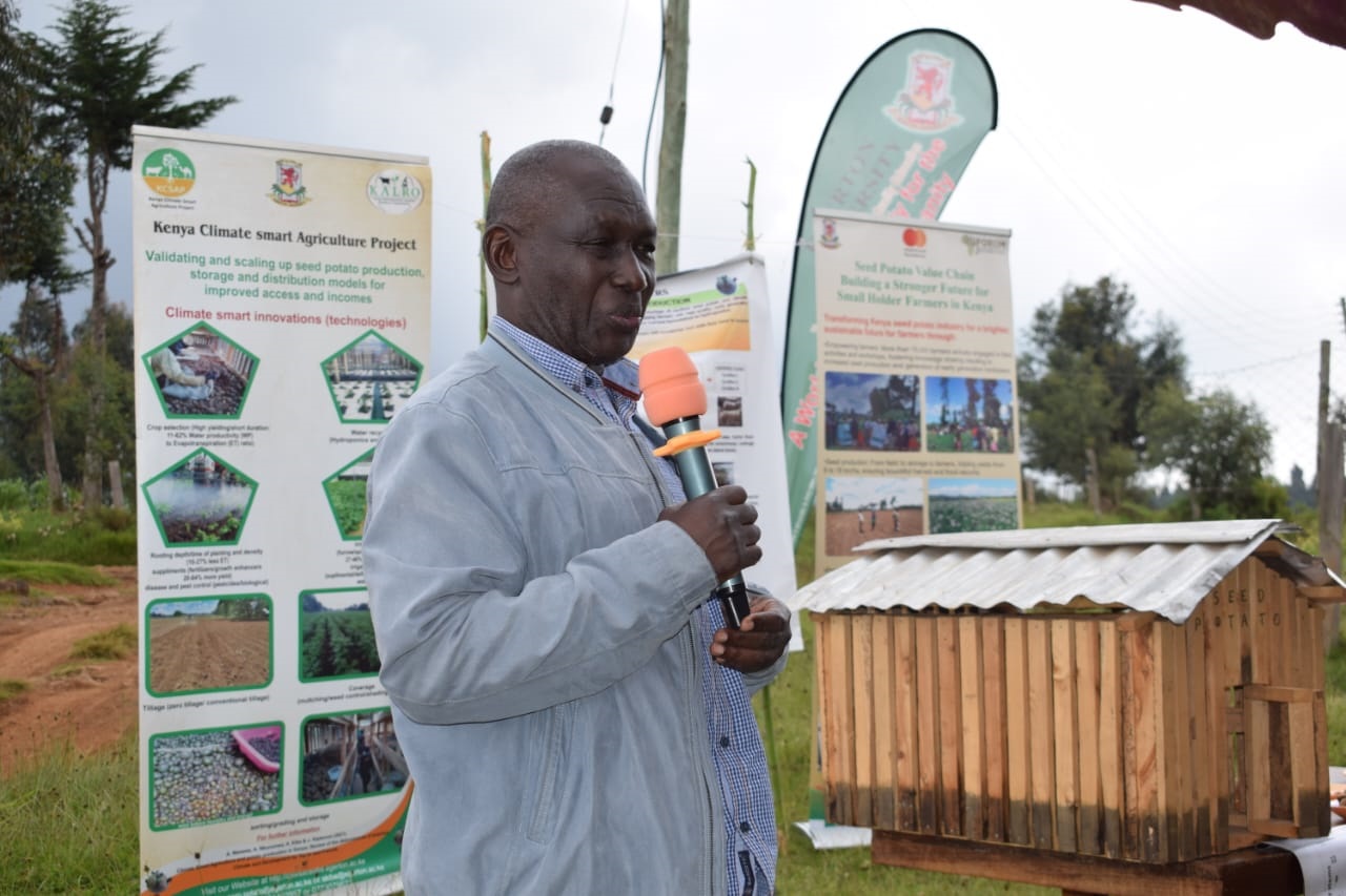 The training included sessions on effective marketing strategies to help farmers maximize their profits. Topics such as market analysis, pricing, and distribution channels were covered. Understanding market dynamics and developing effective marketing plans can help farmers better position their products and improve their income. Farmers were introduced to climate-smart potato varieties such as Wanjiku, Sherekea, and Unica, which are resilient to changing weather patterns and diseases. These varieties are tolerant to blight and yields are higher compared to the commonly cultivated Shangi variety hence important in ensuring food security and promoting sustainable farming practices. Climate-smart varieties are designed to withstand adverse conditions, thus reducing the risk of crop failure and contributing to consistent food and income.To increase productivity in farming, Prof. Arnold Opiyo, from the Department of Crops, Horticulture and Soils at the Faculty of Agriculture at Egerton University trained the farmers on Good Agricultural Practices (GAP) which are anchored on four pillars: economic viability, environmental sustainability, social acceptability and food safety and quality. Observing GAP helps to promote sustainable agriculture, meet national and international environmental standards in farm produce, improve the safety and quality of food and other agricultural products, encourage a culture of food safety, and facilitate market access.
