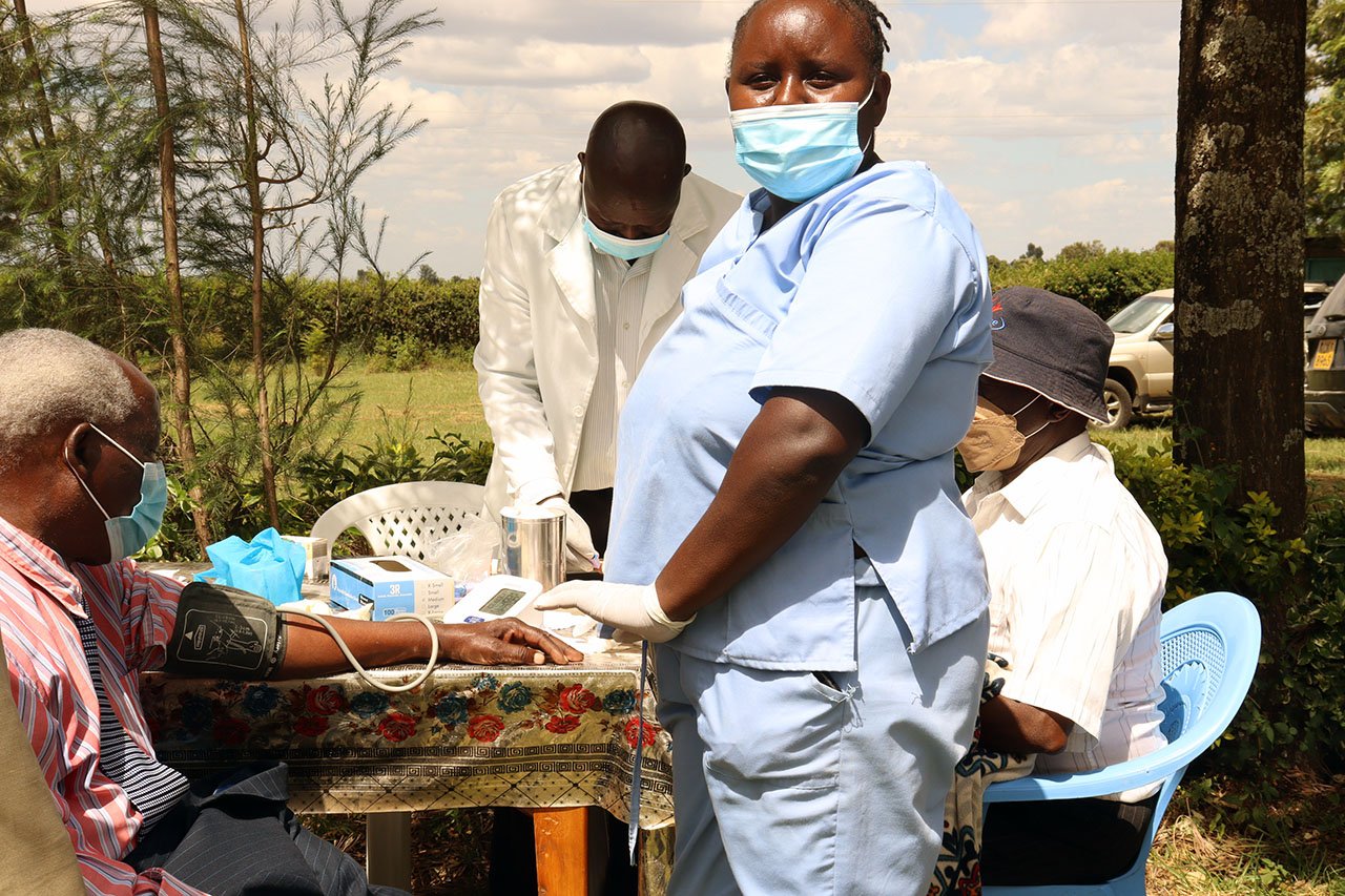 Students from Egerton University’s Department of Food, Nutrition & Dietetics (FOND), Boitekanelo College’s Department of Nutrition and Dietetics, and Clinical Nutritionists from Nakuru Level 5 Hospital facilitated the nutrition education and counselling of diabetic patients and clients. The Clinical Nutrition and Dietetics experts assessed the client’s nutritional status by checking their weights, heights and body mass index (BMI). The checking of blood pressure and random blood sugar testing were performed by medical staff from Mangu Health Centre and ACK – Imani Medical Centre, Kiamunyi, who also gave free diabetes medicines and a talk on diabetes care. Community Health Volunteers (CHVs) also supported the team through mobilization of the community and follow-ups.